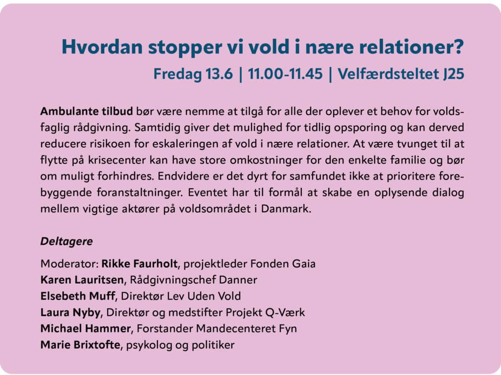 I år afholder vi to spændende arrangementer på Folkemødet. Kom og vær med i Velfærdsteltet, og tag et eksemplar af Breaking the Silence med på vejen – vores nye samtalespil om kærlighed, grænser og vold!
